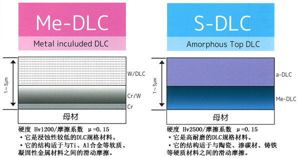 DLC為Diamond Like Carbon coating(類鉆碳)的縮寫,似金剛石狀的非晶質(zhì)碳膜涂層,具有良好的滑動(dòng)性能。根據(jù)顧客的需求,我公司開發(fā)并供應(yīng)各種涂層皮膜。