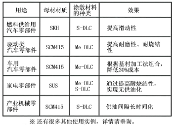 DLC擁有高硬度和固體潤(rùn)滑性,不僅應(yīng)用在工具、模具上,而且還應(yīng)用在家電、汽車等金屬零部件上。